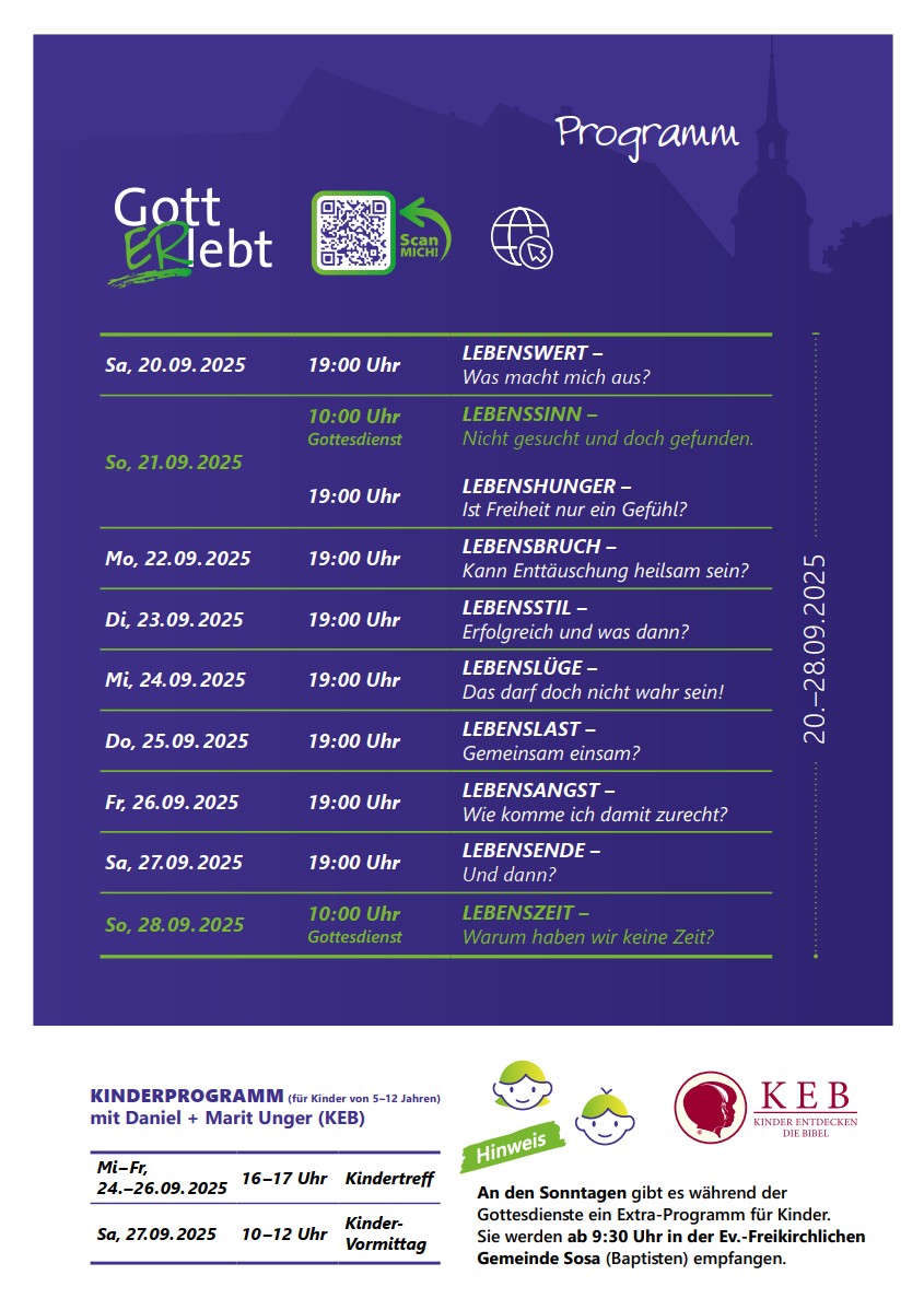 Am sonntag-Vormittag gibt es zusätzlich an gleicher Stelle einen Gottesdienst (siehe Flyer).Für die Infos auf der Rückseite hier klicken!